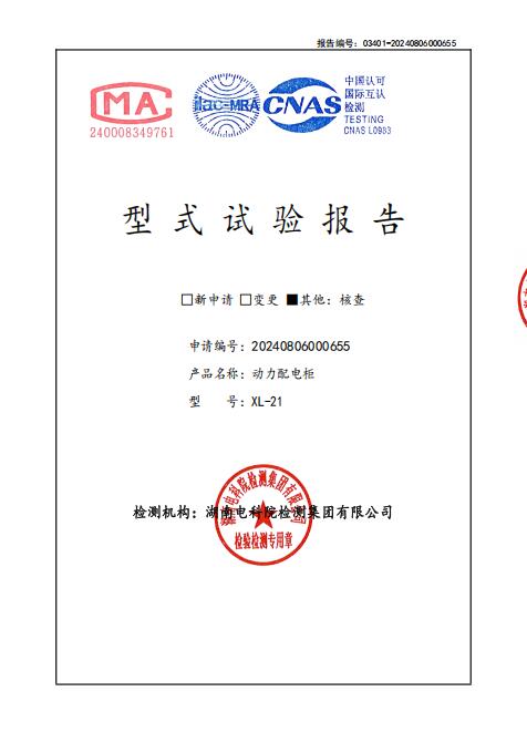 動(dòng)力柜XL-21型式試驗(yàn)報(bào)告
